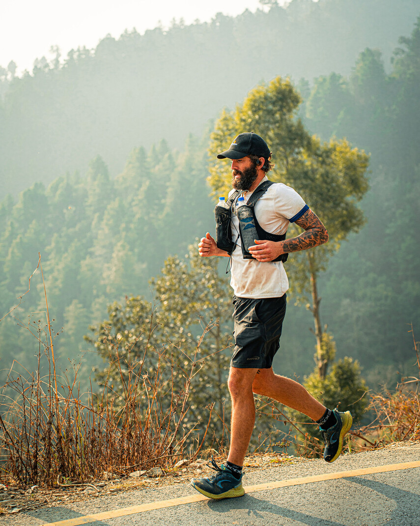 Dieses Projekt begann an einem Herbsttag in Dover/England mit dem Schwimmen von 35 km durch den Ärmelkanal bis nach Calais, Frankreich - einer der anspruchsvollsten Schwimmstrecken der Welt, gefolgt von einer mehrmonatigen Radtour quer durch 19 Länder bis nach Indien, wo er schließlich 875 km bis nach Kathmandu lief, um von dort aus den Mount Everest zu besteigen. Der längste Triathlon der je innerhalb vom 236 Tagen umgesetzt wurde und sicher eine herausfordernde Kombination aus Ausdauer, Vielseitigkeit und mentaler Stärke.
