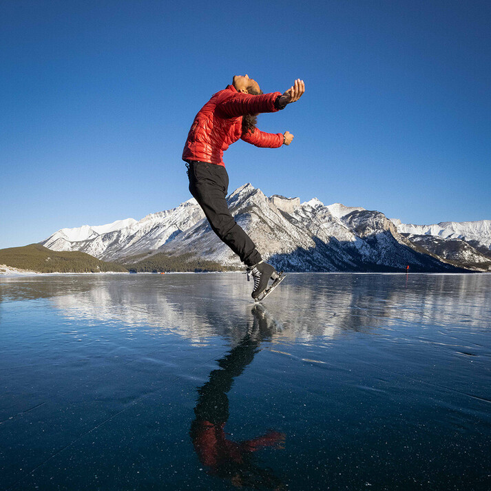 That idea only became a reality after Elladj retired from competition and met photographer Paul Zizka, who showed him the best wild ice spots in the Canadian Rockies—and made sure they were safe. The moment Elladj stepped onto that first frozen lake, he was hooked. "I had never seen ice like that before, and I had never skated like that before. I knew right then: something is shifting for me."